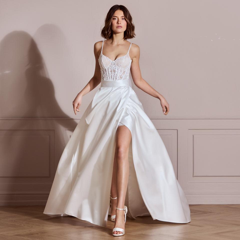 Bridal minis have become an essential part of the modern wedding wardrobe, offering brides a fresh, playful alternative to traditional lengths. Extra‑short dresses are ideal as dance-ready party looks, allowing complete freedom of movement and a touch of youthful energy.