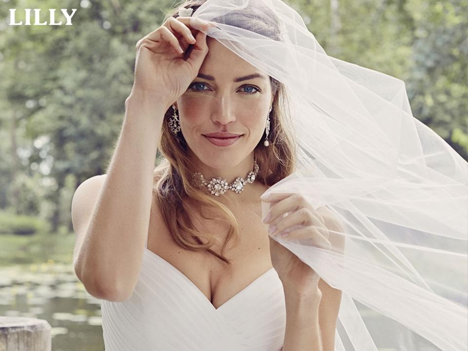 Brudklänning från LILLY med en halvtransparent överdel och glitter