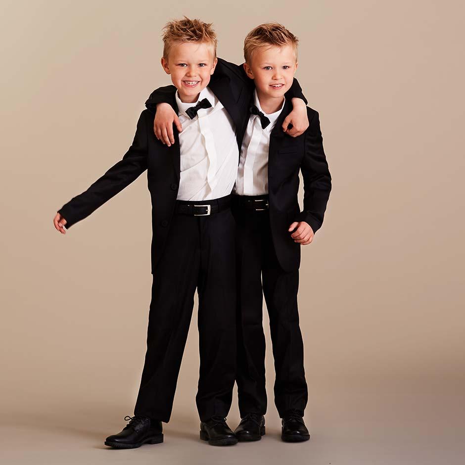 För pojkarna är det så klart brudgummen som får agera stilmässig förebild. Kavaj och fluga ska matcha – och pojkarnas skjortor ska gärna matcha såväl brudgummens skjorta som brudens klänning.