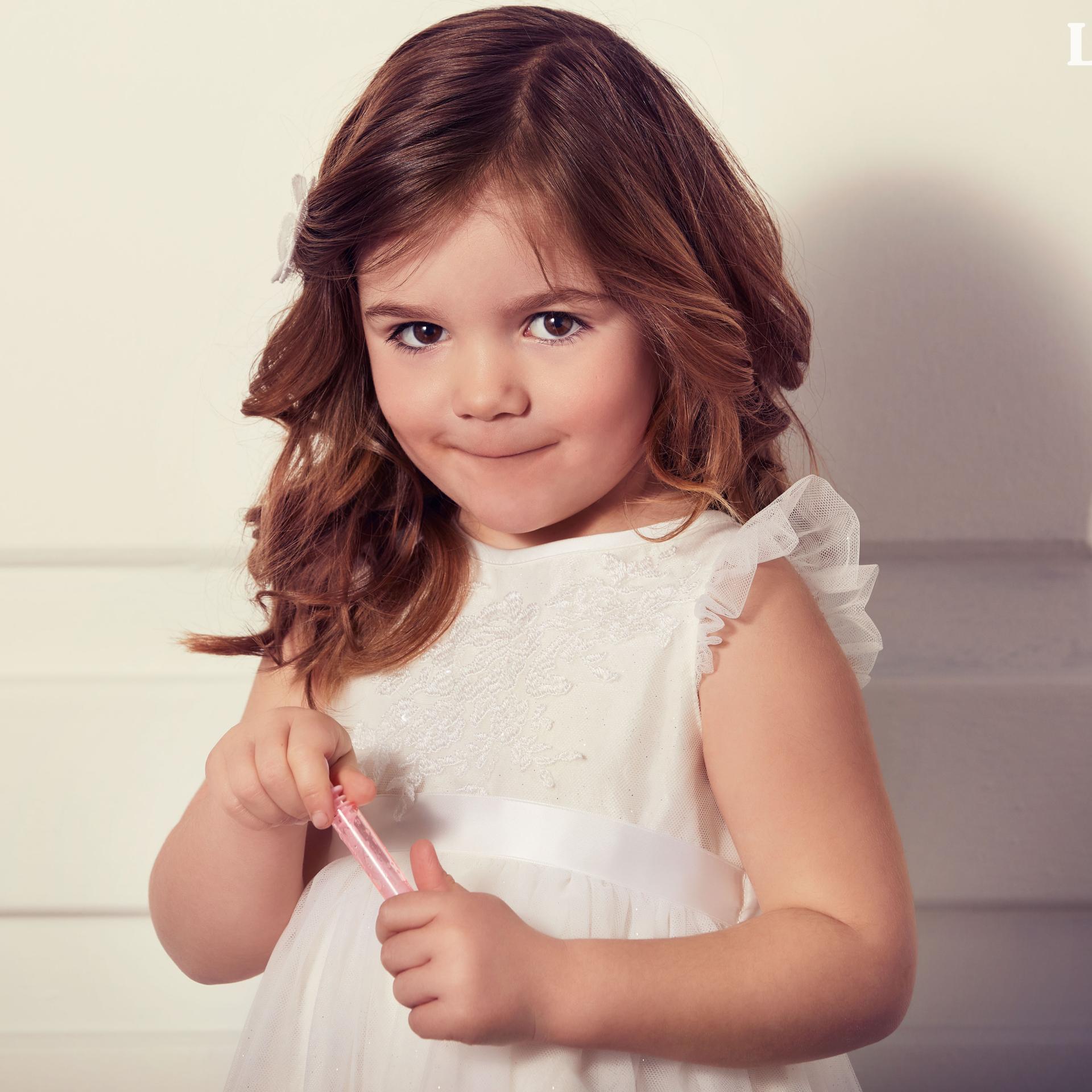 För flickorna betyder det att deras klänningar ska ha samma färg som bruden – gräddvit, elfenben eller helt vita klänningar är de vanligaste färgerna. Även håruppsättningen får gärna matcha brudens. Anne Kathrine Rantzau rekommenderar trekvartslängd på brudnäbbarnas klänningar, och hennes favorittyg är tyll. Tunna lager av tyll ger en lätt känsla som för tankarna till små älvor – det är faktiskt riktigt bedårande.