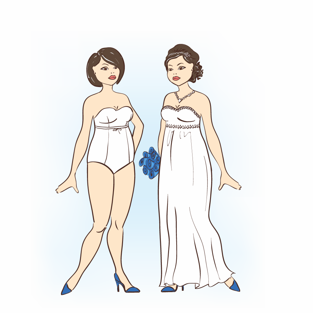 Hon kan med fördel välja en brudklänning som framhäver den smalaste punkten i midjan. Den nedre delen av klänningen ska ha ett mjukt och lätt böljande fall i en A-linje.